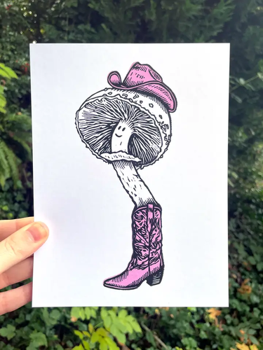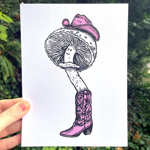Mushroom Cowboy - Linocut Print